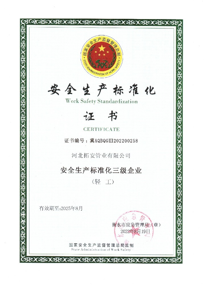 安全生產(chǎn)標(biāo)準(zhǔn)化證書