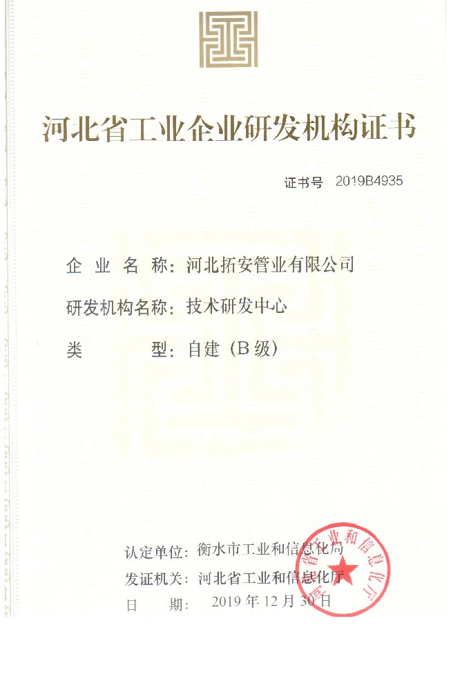 河北省工業(yè)企業(yè)研發(fā)機構(gòu)證書B