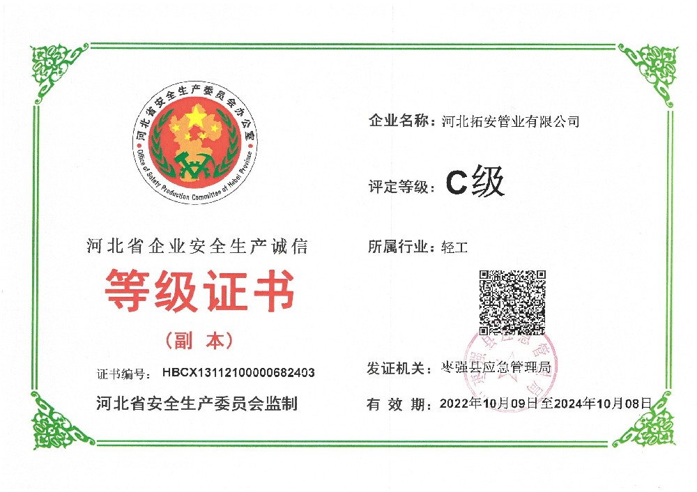 河北省企業(yè)安全生產(chǎn)誠信證書