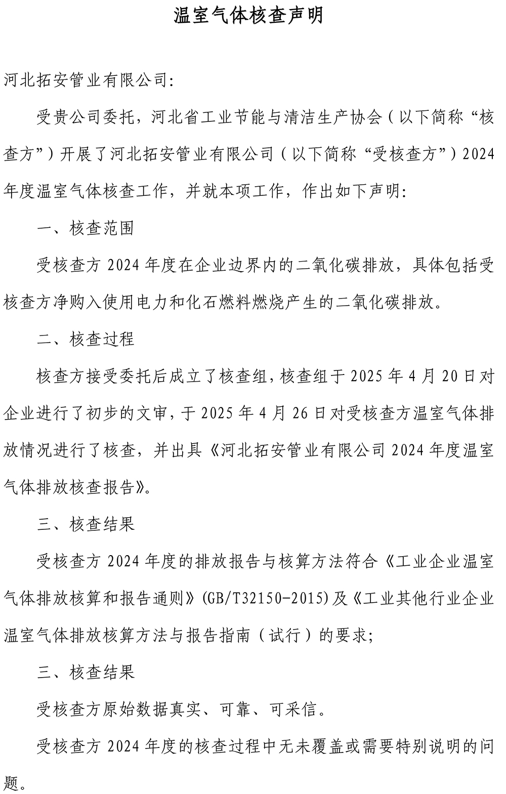 上一篇:河北拓安管業(yè)有限公司2023年度溫室氣體排放核查報(bào)告